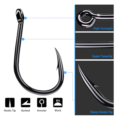 Set of fishing hooks with case for their storage. They are made of durable and high quality carbon steel that does not rust.