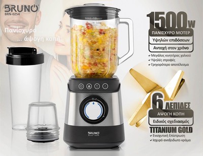 BRUNO μπλέντερ 3 σε 1 προηγμένων λειτουργιών BRN-0254, 1500W, 1.8L γυάλινη κανάτα, 6 λεπίδες, inox-μαύρο